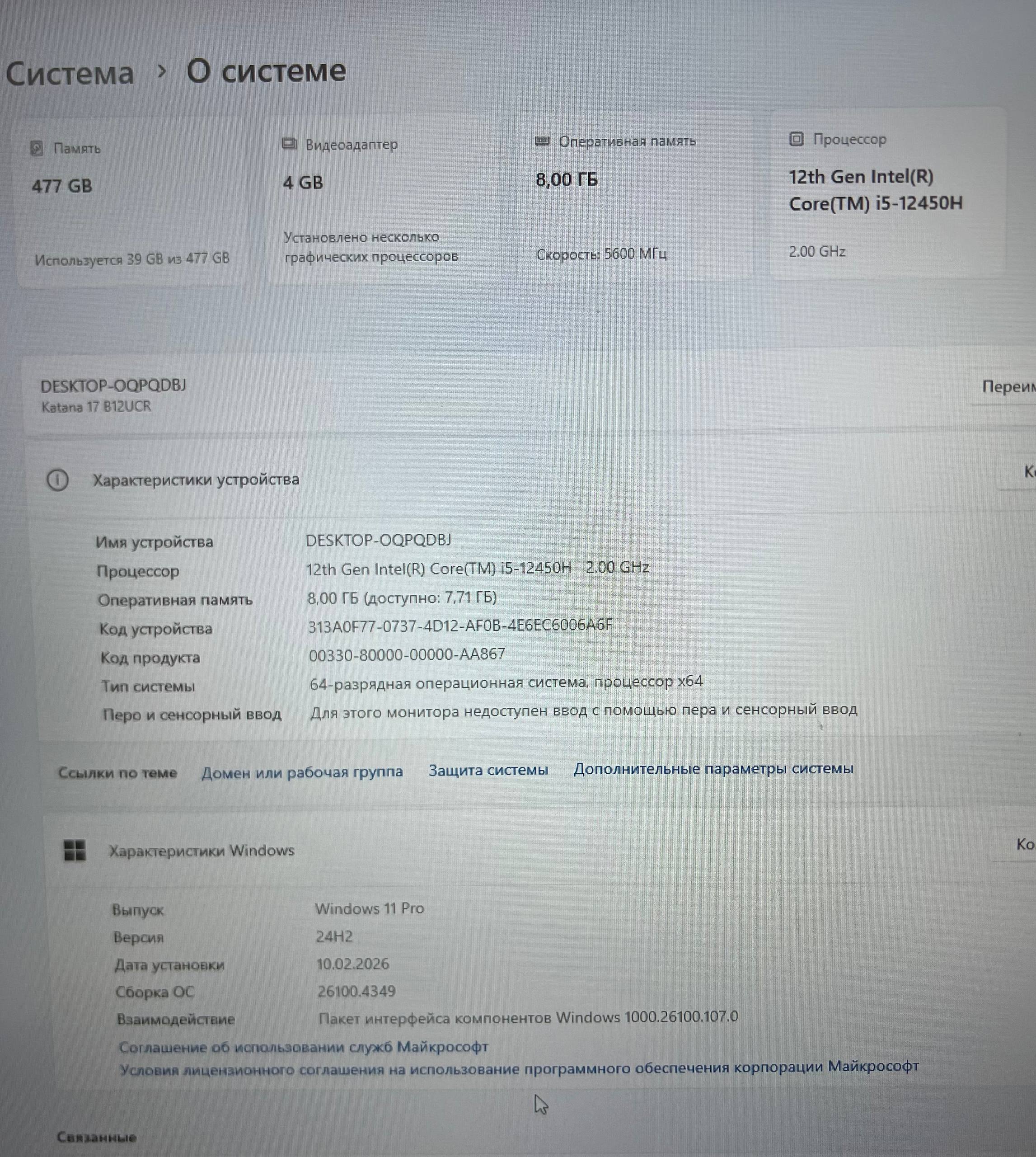 Ноутбук MSI Katana i5 12th\8\ssd m2 512\RTX 3050ti 8gb
